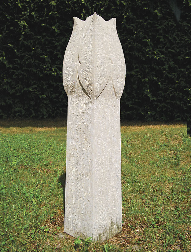 Grabstein in Form einer Knospe.