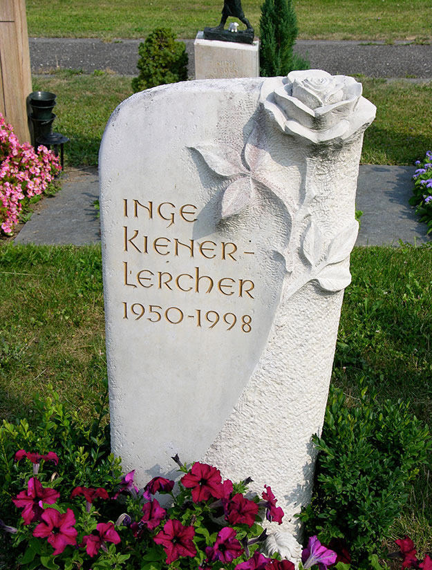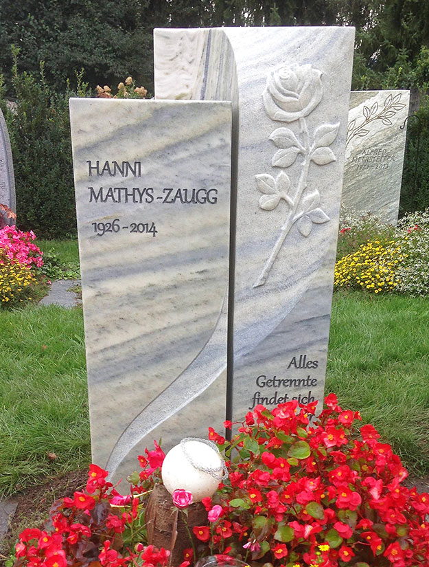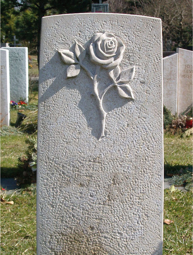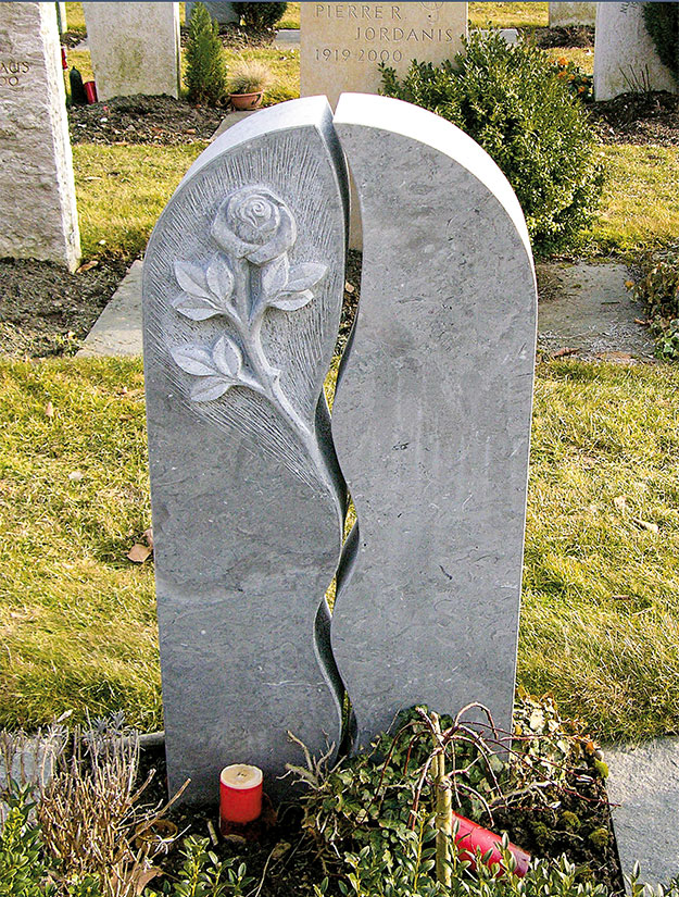 Die Rose als das Symbol für die unsterbliche Liebe und den unendlichen Schmerz machen aus dem Grabstein ein Monument der Gefühle der Hinterbliebenen.