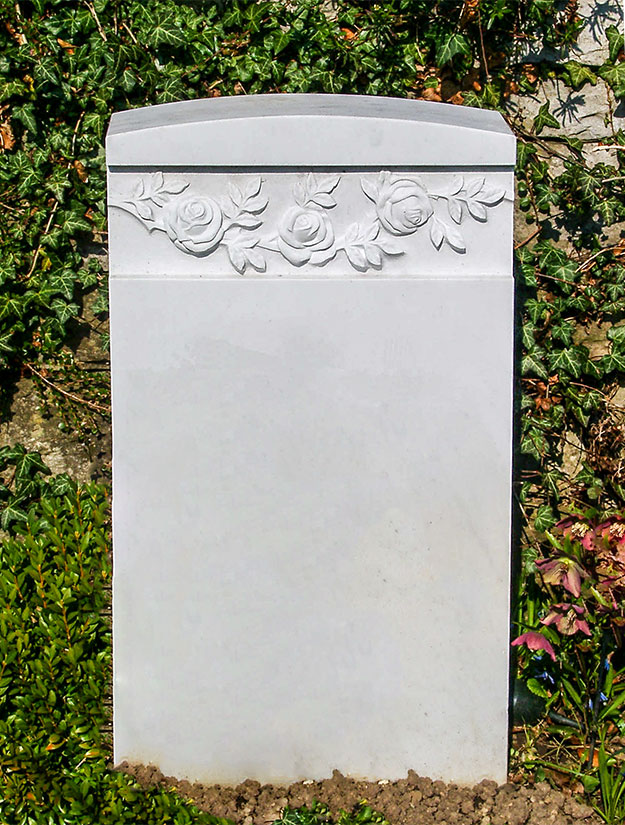 Grabstein naturbelassen mit Rosenranke aus Crevola Marmor