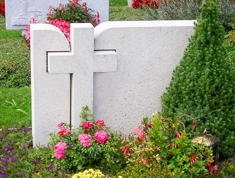 Der Grabstein mit Kreuz als Symbol für das ewige Leben.