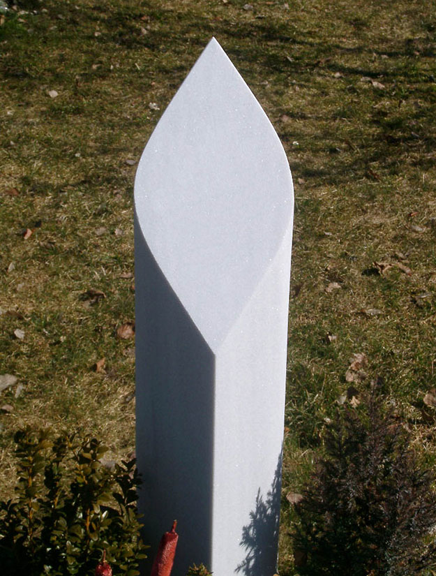Grabstein Stelen abgerundet mit Flamme Skulptur.
